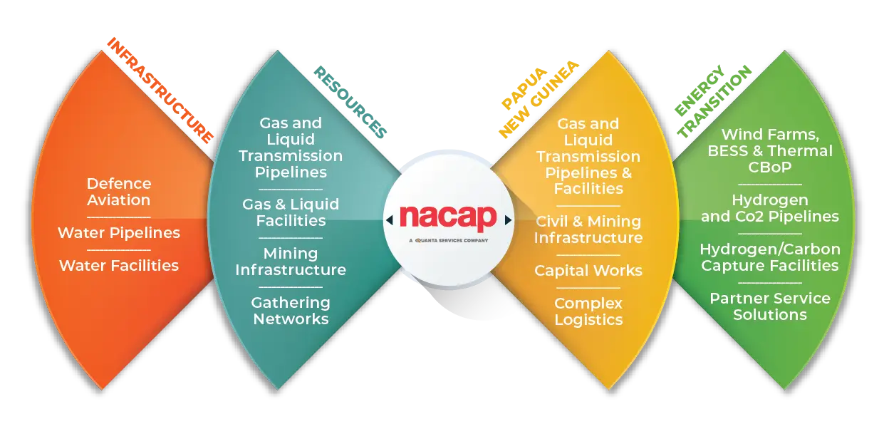 With 40 years of experience in engineering, procurement, and construction, Nacap specialises in safe, reliable, and sustainable energy infrastructure. We combine innovation and value engineering to deliver streamlined, cost-effective solutions that enhance safety, efficiency, and whole-of-life outcomes. Partnering with clients, local suppliers, and stakeholders, we deliver turnkey energy projects that support communities and local economies.